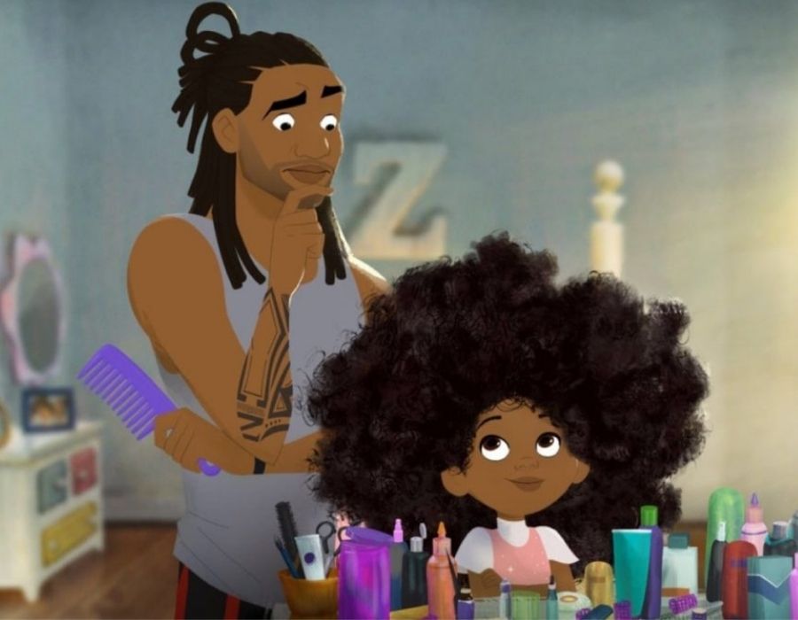 Yönetmen Matthew A. Cherry’nin animasyon kısa filmi Hair Love [1] 2019 yapımı ve Oscar ödüllü. Özetle şunu anlatıyor. Filmin başında, nerede olduğu anlaşılamayan annenin görevlerini devralan bir babanın ve kızı Zuri’nin hikâyesini izlediğinizi zannediyorsunuz. Birçok işin yanında, kızının kabarık saçlarını da sakinleştirmeye uğraşan baba, annenin daha önce çekmiş olduğu saç yapım videolarından birini izleyerek dizginleri eline alıyor ve kızının saçıyla vermiş olduğu mücadeleyi kazanıyor. Sonrasında baba ve kız hazırlanıp yola çıkıyor. Yol, hastane odasında saçlarını kanserden dolayı kaybettiği anlaşılan annenin yanına ulaşılmasıyla bitiyor. Yeni bir yola çıkış. Yeni bir süreç. Artık ailecek evde olacaklar, muhtemelen. Duygusal bir yolculuk. Ama eğlenceli bir dil.
